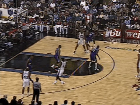 湖人球员尼克-范埃克塞尔在采访中表示,艾弗森有他见过最棒的体前变向动作。这一动作日后晃过了无数防守者,而那一球,正是它在NBA的首次惊艳登场。