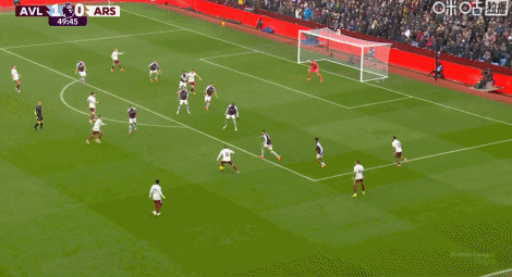 第42分钟,萨卡强突回传,本-怀特打门被没收