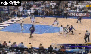 仔细看:这是掘金进攻没打进,科比后场推进反击,人群中一个背后运球!