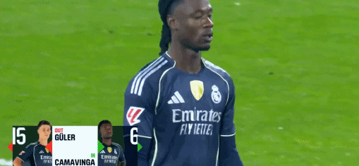 第46分钟,皇马下半场立马做出调整,卡马文加替补登场