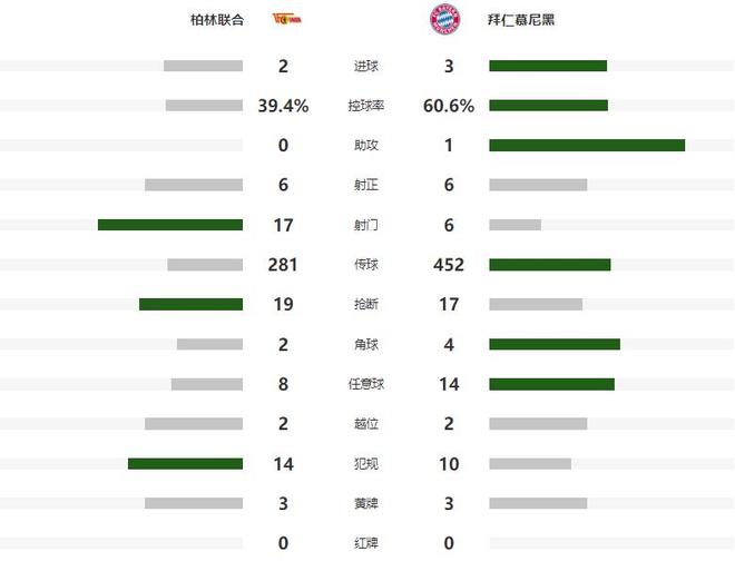 本场比赛柏林联合进攻端的表现并不差,两度利用点球攻破了诺伊尔的十指关,但是防守端的发挥一言难尽,单场比赛两度送乌龙大礼,再加上凯恩的进球,拜仁最终以3-2险胜柏林联合。