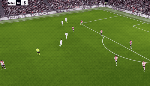 面对着毕尔巴鄂的高位逼抢,皇马的战术相当奏效,那就是找准时机,送出准确的长传。